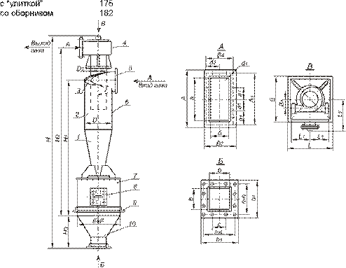 65 Циклон ЦОК Габаритные и присоединительные размеры циклона с обратным конусом и выдвижным пылесборником.