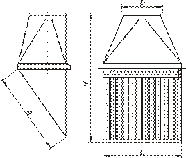 Зонты круглые на ниппельном, бандажном или фланцевом соединениях. Зонты применяются в системах естественной вытяжной вентиляции и с механическим побуждением. Назначение зонтов - предотвращение попадания атмосферных осадков в вентиляционные шахты. Размеры зонта выбираются по таблице в зависимости от попе -речного сечения вентиляционной шахты. Изготовление зонтов предусматривается по конфигурации колпака - круглые и прямоугольные. Все присоединительные размеры соответствуют нормализованному ряду воздуховодов и присоединительным размерам узлов прохода вентиляционных вытяжных шахт через покрытия зданий по серии 5.904-51.