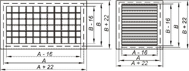 Решетки вентиляционные Решетки вентиляционные. Предназначены для установки в системах вентиляции, воздушного отопления и кондиционирования воздуха в зданиях, помещениях и сооружениях различного назначения. Исполнение решеток учитывает повышенные требования к внешнему виду. Решетки выполняются из стали. Решетки снабжены индивидуально регулируемыми жалюзи что, обеспечивает возможность регулирования расхода приточного воздуха и изменения направления и скорости воздушного потока. Возможен выпуск решеток любых типоразмеров и цветов по специальному заказу. Базовый цвет - белый. Выпускается два типа вентиляционных решеток: решетки с вертикальными и горизонтальными жалюзи РП; решетки с вертикальными или горизонтальными жалюзи РВ. Пластины каплеобразной формы решеток настраиваются поштучно. Крепление осуществляется при помощи шурупов (видимое крепление) без монтажной рамы или с ней, или на зажиме-защелке (невидимое крепление) без монтажной рамы.