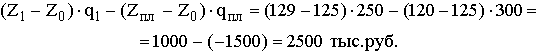 (в нашем примере (129-125)×250=1 000 тыс. руб.). Вычтя из фактической экономии плановую, получим сверхплановую экономию (перерасход):