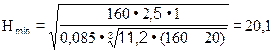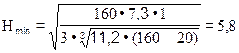 где ωo - средняя скорость выхода газовоздушной смеси из устья дымовой трубы, м/с; принимается в пределах 7...10 м/с для железобетонных и кирпичных труб высотой до 45 м и 12... 15 м/с для металлических труб высотой до 44 м. 3. Предварительное значение минимальной высоты дымовой трубы, м.