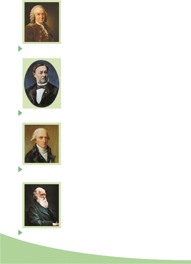Усі накопичені наукові факти про різноманіття живого узагальнив видатний шведський учений XVIII ст. Мал. 1.2. Арістотель (384–322 рр. до н. е.) Мал. 1.3. Роберт Гук (1635–1703) Мал. 1.4. Антоні ван Левенгук (1632–1723) Карл Лінней (мал. 1.5). Він наголошував на тому, що в природі існують групи особин, які нагадують одна одну за особливостями будови, потребами до довкілля, заселяють певну частину поверхні Землі, здатні схрещуватися між собою та давати плідних нащадків. Такі групи, кожна з яких має певні відмінності від інших, він вважав видами . Лінней започаткував сучасну систематику, а також створив власну класифікацію рослин і тварин. Він ввів латинські наукові назви видів, родів та інших систематичних категорій, описав понад 7500 видів рослин і близько 4000 видів тварин. Мал. 1.5. Карл Лінней (1707–1778) Важливий етап у розвитку біології пов’язаний зі створенням клітинної теорії та розвитком еволюційних ідей. Зокрема, було виявлено ядро в клітині: уперше його 1828 року спостерігав у рослинній клітині англійський ботанік Роберт Броун (1773–1858), який згодом (1833) запропонував термін «ядро». 1830 року ядро яйцеклітини курки описав чеський дослідник Ян Пуркіне (1787–1869). Спираючись на праці цих учених та німецького бота ніка Маттіаса Шлейдена (1804–1881), німецький зоолог Теодор Шванн (мал. 1.6) 1838 року сформулював основні положення клітинної теорії, згодом доповнені німецьким цитологом Рудольфом Вірховим (1821–1902). На початку ХІХ ст. Жан-Батіст Ламарк (мал. 1.7) за-