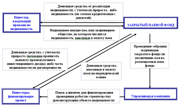 Использование данной технологии помогает привлекать иностранный капитал в проекты, которые прежде вообще считались невыгодными для коммерческого финансирования. Например сейчас проводится работа над реализацией программы модернизации таких элементов российского жилищно - коммунального хозяйства, как водоснабжение и утилизация мусора. В качестве базового актива в данном случае выступают целевые платежи населения и предприятий за данные виды муниципальных услуг. Секьюритизируя т.е. обращая в качестве залогового инструмента в ликвидную долговую ценную бумагу - фактически гарантированные денежные поступления будущих периодов, данная программа позволяет уже сегодня привлечь на модернизацию российского ЖКХ внушительные суммы средств. После добавления таких компонентов, как валютный и кредитный хеджи, данный структурный инструмент может быть размещен среди зарубежных инвесторов, а полученное финансирование будет направлено на замену изношенной инфраструктуры. Для диверсификации рисков и достижения экономии масштаба в данный инструмент можно оптимально объединить денежные потоки с 10-20 различных муниципалитетов в разных местностях. При этом, роста тарифов не произойдёт в силу экономии на отсутствии необходимости ежегодного ремонта и замены части инфраструктуры. ПИФы и их использование в инвестировании строительстваНеобходимым условием развития рынка ипотечных ценных бумаг является успешное функционирование института паевых инвестиционных фондов, существующих в России с 1996 года. Важнейшим событием стало принятие в конце 2001 года Федерального Закона РФ «Об инвестиционных фондах», который создал правовую форму коллективного инвестирования в недвижимость в виде закрытого паевого инвестиционного фонда (ЗПИФ). Однако созданы первые закрытые ПИФы были только в ноябре 2002 года. До этого почти год ушел на подготовку и утверждение нормативных правовых актов, регулирующих их деятельность. Открытые и интервальные ПИФы, работая на денежном и фондовом рынке, даже при максимальной диверсификации не могли на коротких промежутках времени демонстрировать устойчивый рост стоимости пая. Полная зависимость от конъюнктуры фондового рынка делала паи достаточно волатильным инструментом. В настоящее время на финансовом рынке складывается благоприятная ситуация инвестирования в недвижимость: отрицательная доходность валютных вкладов, рост доходов населения и активов институциональных инвесторов, снижение доходности по облигациям и векселям. И что самое главное - неуклонное удорожание недвижимости. Поэтому, среди множества вариантов инвестирования в строительство и недвижимость закрытые ПИФы недвижимости являются одним из самых перспективных и привлекательных для крупных институциональных инвесторов, в том числе банков. Позитивные изменения на рынке недвижимости стимулируют инвесторов к активной деятельности в этой сфере. Это касается торговых и офисных помещений и жилого фонда, а также земельных участков. Большой спрос на них отражает общую тенденцию роста российской экономики, обусловленного высокими ценами на нефть в прошлом году и доверием политическому руководству страны, а также к проводимому им курсу реформ, в особенности в области законодательства, регулирующего имущественные правоотношения. Рын