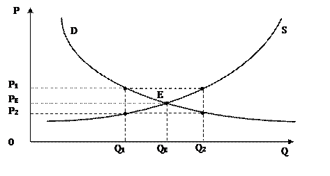 Если на отраслевом рынке правительство вводит налог на продажи, так пусть товар стоил 10 руб., то теперь его цена поднялась до 11, при 10% налоге на продажи. Здесь налог – добавка к цене. В состоянии равновесия QE