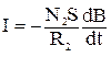 где dФ – изменение потока вектора магнитной индукции через поверхность, охватываемую всеми витками вторичной обмотки. Если S - площадь, охватываемая одним витком, а N2 - количество витков, то Ф = ВSN2 и