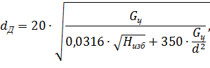 Диаметр диафрагмы определяется при известном циркуляционном расходе 0,018 л/с по формуле: