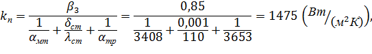 где d вн – внутренний диаметр трубок, d вн =14мм. Коэффициент теплопередачи: