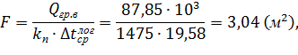 Задаваясь скоростью воды в межтрубном пространстве подогревателя, равной 1 м/с, найдем ориентировочно площадь сечения межтрубного пространства, м2 (при ρ =1000 кг/м3 ):