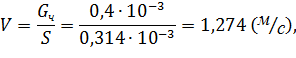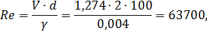 где V – скорость теплоносителя, см/с; d – диаметр трубопровода водомерного узла, см; γ=0,004 см2 /с – кинематическая вязкость воды.