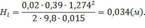 где λ – коэффициент гидравлического сопротивления трению; L – длина водомерного узла, м; V – скорость теплоносителя, м/с; g – ускорение свободного падения, м/с2 ; d – диаметр трубопровода водомерного узла, м. Скорость теплоносителя , м/с, определяется по формуле:
