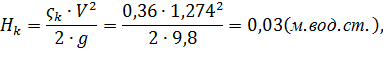 где ς к – значение местного сопротивления. Потери давления, м, на расширение потока определяются по формуле: