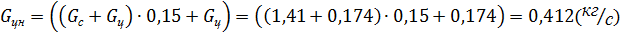 где ρ – плотность воды, кг/м3 ; с – теплоемкость воды, Дж/(кгК); t г ср – средняя температура горячей воды в трубопроводах водоразборных стояков принимается равной 55ºС [1] ; t хз – температура холодной воды в сети водопровода принимается равной 5ºС [1]; Gч – расход горячей воды в час наибольшего водопотребления, м3 /с; Qп , Qц – потери теплоты подающим и циркуляционными трубопроводами системы ГВС, Вт. На начальной стадии проектирования системы ГВС диаметры и длины трубопроводов не известны, поэтому сумма Qп +Qц ориентировочно может быть оценена коэффициентом 1,06. Средний часовой расход воды на ГВС: