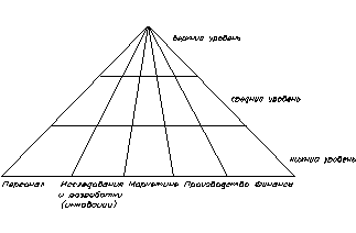 Рисунок 37 – Линейно-функциональная структура 4) Программно-целевые структуры а) Структура проектного управления Состоит из двух звеньев: во-первых, группы развития, ответственной за стратегию развития, научные исследования, финансы и обеспечение всеми видами ресурсов; во-вторых, проектной группы, которая осуществляет все необходимые работы по разработке и реализации отдельных проектов по созданию и освоению новых видов продукции.