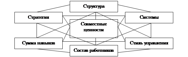 Рисунок 14 – Схема процесса управления 1.3.3 Системный подход Применение теории систем к управлению позволило интегрировать вклады всех школ, которые в разное время доминировали в теории и практике управления. С точки зрения системного подхода, организация – это открытая сложная социотехническая система. Система – это некоторая целостность, состоящая из взаимозависимых частей, каждая из которых вносит свой вклад в характеристики целого. Открытая система – это система, взаимодействующая с внешней средой через энергию, информацию, материалы и т.д. Открытые системы имеют способность приспосабливаться к изменениям окружающей среды для того, чтобы продолжить свое функционирование. Сложная система – это система, состоящая из нескольких взаимозависимых подсистем. В соответствии с системным подходом одним из вариантов повышения эффективности менеджмента в организации является «Схема 7-С» компании Маккинси, в которой выделены семь взаимосвязанных направлений анализа, оценки и совершенствования системы управления организацией.
