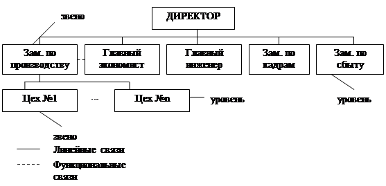 Рисунок 33 – Линейная структура 2) Функциональная структура По отдельным функциям управления формируются специальные подразделения, работники которых обладают знаниями и навыками в данной области управления