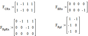 Определим коэффициенты В1, В2, Р1, Р2, используя для этого программу “Mathcad”. Составим необходимые транспонированые подматрицы