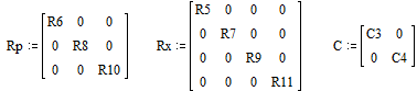 Составим ![]() матрицу сопротивлений Rp и Rx, а также матрицу ёмкостей C Подставляя полченные матрицы в вышеприведённые формулы получим: