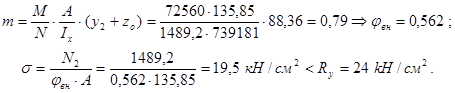 По [5, табл. 72] φ=0,975 Условия обеспечения общей устойчивости проверяются по формуле: