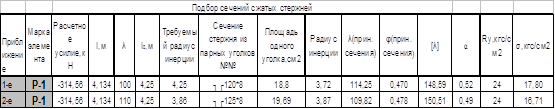 Расчет решетки проводим на Усилие сжатия в раскосе: