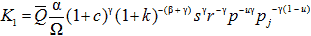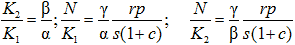 Из Лагранжина L(K 1 , K 2 , N, λ) = r p(1 + k)K 1 + r pK 2 + s(1 + c)N + λ(Ǭ – K α 1 K β 2 N γ ). Получаем условия первого порядка 5 : (4)