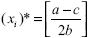 Из условия (1.2) определяется объем выпуска, при котором пересекаются кривые спроса и удельных издержек. В зависимости от знака правой части равенства возможны три случая. Случай 1. Для i-й фирмы Случай 2. Для i-й фирмы Случай 3. Для i-й фирмы 3. Найдем теперь для случая 3 максимальную цену, которую может назначить i-й участник конкурса: Максимальная цена есть минимум из цены нерегулируемой монополии P в ((x i )*) и цены P 0 , устанавливаемой концедентом. Иными словами, возможна ситуация, когда рациональный участник конкурса будет ориентироваться в качестве максимума цены не на Р 0 , как в случае абсолютно неэластичного спроса, а на некоторую более низкую (!) цену. Найдем значение выпуска (x i )*, которое выбрала бы нерегулируемая монополия для максимизации своей прибыли. Для этого приравняем предельную выручку предельным издержкам: MR(x) = a — 2bx = c = МС(x). Откуда получаем