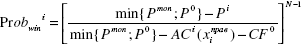 5. Докажем следующее утверждение. Утверждение 2. В ситуации 1 максимизирующий свою ожидаемую прибыль победитель конкурса получит положительную монопольную ренту ex ante, т. е. оптимальная цена, указанная в его конкурсном предложении, будет строго выше цены, определяемой пересечением кривых спроса и удельных издержек при объеме выпуска x win прав. Доказательство. Без потери общности допустим, что победил i-й участник конкурса. Выпишем функцию ожидаемой прибыли i-го участника конкурса, предполагающего, что значения конкурсных предложений его конкурентов есть независимые случайные величины, равномерно распределенные на отрезке [ AC i (x i прав); min{P 0, P в ((x i )*)}]. Для простоты далее откажемся от использования индекса i. E(Profit) = [TR(x) – TC(x)]Prob win (P в (x)). (1.6) Находя условие первого порядка (FOC), продифференцируем это равенство по х — объему выпуска: