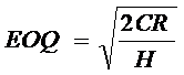 Рис. 1. Процент от общего числа позиций номенклатуры запаса товаров Группирование запасов ТМЦ далеко не всегда удается сделать объективным. Но в любом случае его цель заключается в том, чтобы отделить существенные позиции запасов от несущественных. После того, как удается достичь этой цели, следующей целью является установление соответствующего учета и контроля в разрезе групп запасов. Кроме этого в разрезе групп запасов осуществляются адекватные мероприятия по оптимизации размеров заказа и поставок. Так запасы группы А требуют особого контроля и внимательного подхода к определению их размеров. В то же время запасы группы С не нуждаются в столь большом внимании, что очень важно для оптимизации труда персонала, занятого в логистике. Модель EOQ Модель EOQ, которую часто называют формулой Уилсона, является простейшей оптимизационной моделью для детерминированного спроса, и отсутствия дефицита. Модель, впервые предложенная Ф. Харрисом в 1913 г. и развитая Р. Уилсоном в 1934 году, минимизирует в простейших предположениях суммарные затраты на хранение и пополнение товара. На рис. 2 показано взаимоотношение между кривыми издержек размещения заказа (обратно пропорционально размеру заказа), хранения запаса (прямо пропорционально размеру заказа), кривой общих издержек и оптимальным размером заказа. Формула оптимального размера заказа для единственного продукта может быть представлена как точка минимума суммарной функции издержек. Если: EOQ - оптимальный размер заказа C - издержки размещения заказа (не зависит от величины заказа) R - ежемесячный детерминированный спрос на продукт H - издержки хранения единицы товара в месяц, то: