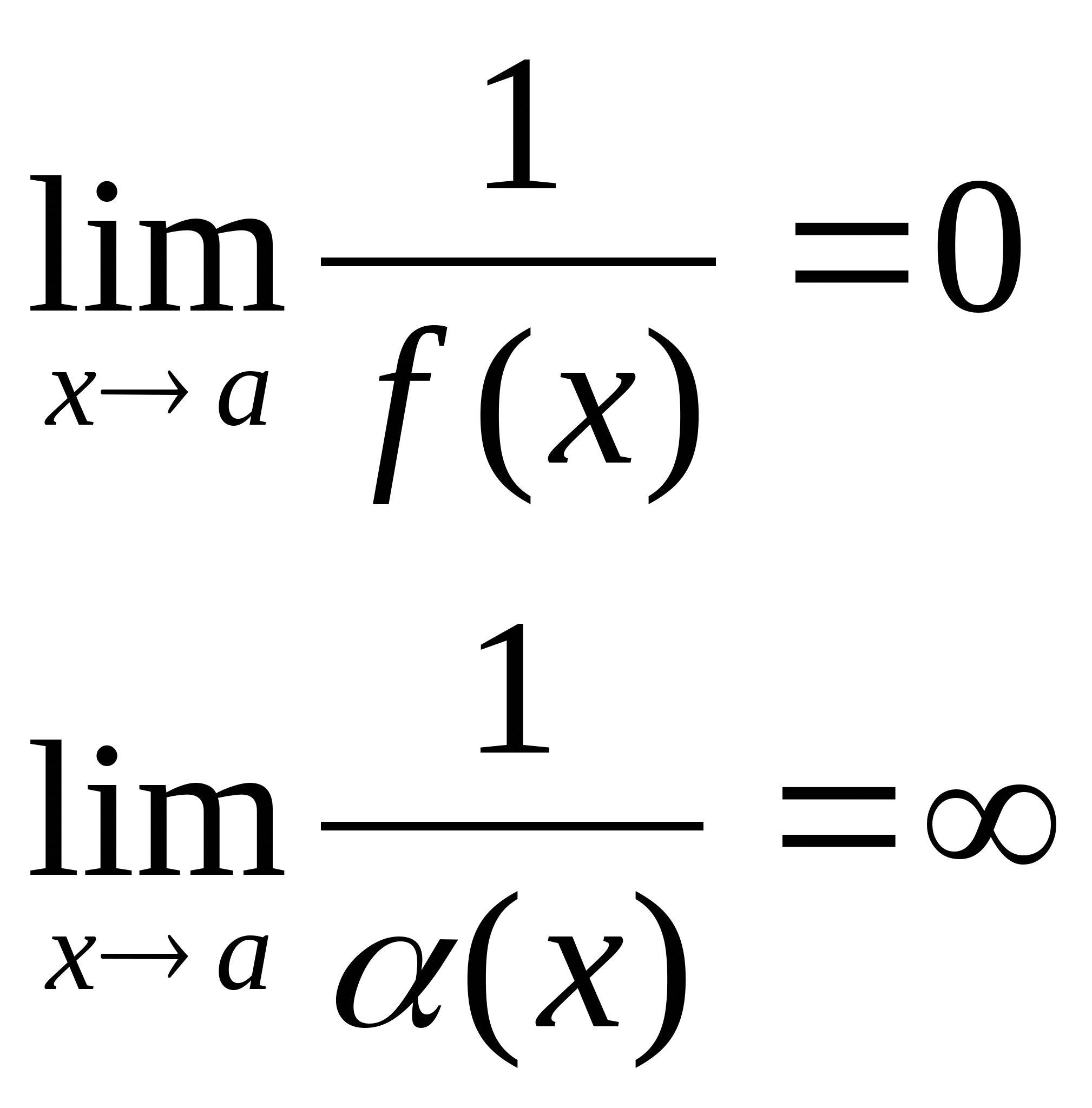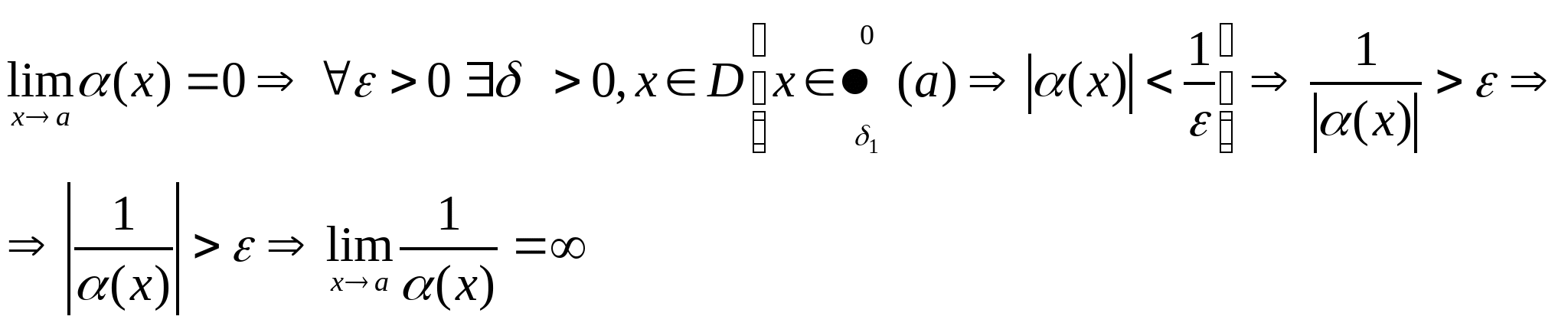 Произведение бесконечно больших на ф-ию, имеющую отличный от нуля предел - бесконечно большая. Ф-ия, обратная величине бесконечно большой – есть бесконечно малая, и наоборот.