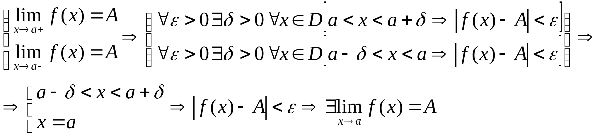 Теорема: Для того, чтобы в точке а существовал предел ф-ии, необходимо и достаточно существования и равенства левостороннего и правостороннего пределов Доказательство: Необходимость: