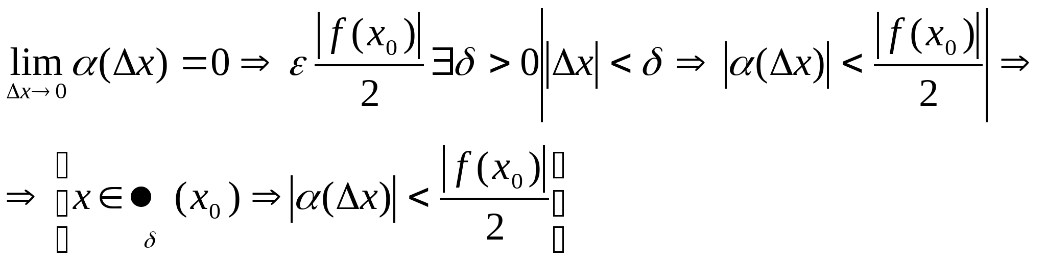 Если ф-ия имеет в т. а, конечный предел, неравный нулю то найдется такая Если f(x), имеет в т. а отрицательный конечный предел, то найдется такое значение этой точки, в котором ф-ия отрицателная.