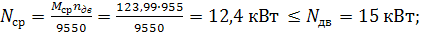 тогда толщина стенки равна: Приняв в качестве материала барабана чугун марки СЧ 15 (σв = 650 МПа, [σсж ] = 130 МПа), найдем напряжение сжатия в барабане: Механизм подъема груза включает в себя электродвигатель и редуктор, которые необходимо выбрать из ряда выпускаемых промышленностью. Для привода механизмов грузоподъемных машин применяются крановые асинхронные электродвигатели, характеризующиеся повышенной перегрузочной способностью. Электродвигатель выбирается по каталогу согласно статической мощности в соответствии с режимом эксплуатации механизма. Статическую мощность двигателя находим по формуле: где ηпр = 0,85 – кпд механизма;
