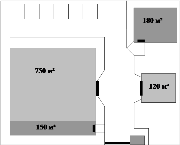 На данной площади (3000м2) будут размещены: - сервисный центр ремонта, - склад запчастей, - парковка для автомобилей, - КПП. - автомобильная мойка, - кафе. Все перечисленные участки представлены на рисунке 1 в виде схемы.