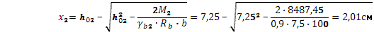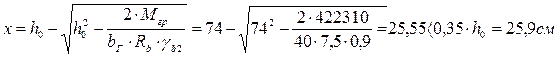 Принимая ориентировочно полезную высоту сечения h0 = 74 см, определяем необходимую высоту сжатой зоны сечения: