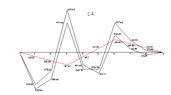 Изгибающие моменты в расчетных сечениях главной балки (кНм)