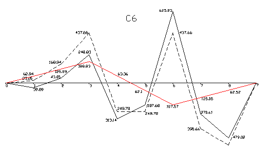 Огибающая эпюра моментов после перераспределения