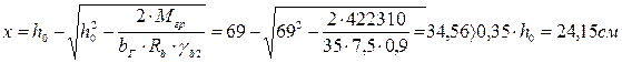 = 74 см. Определяем требуемую высоту сжатой зоны сечения при М = 249,78кНм: