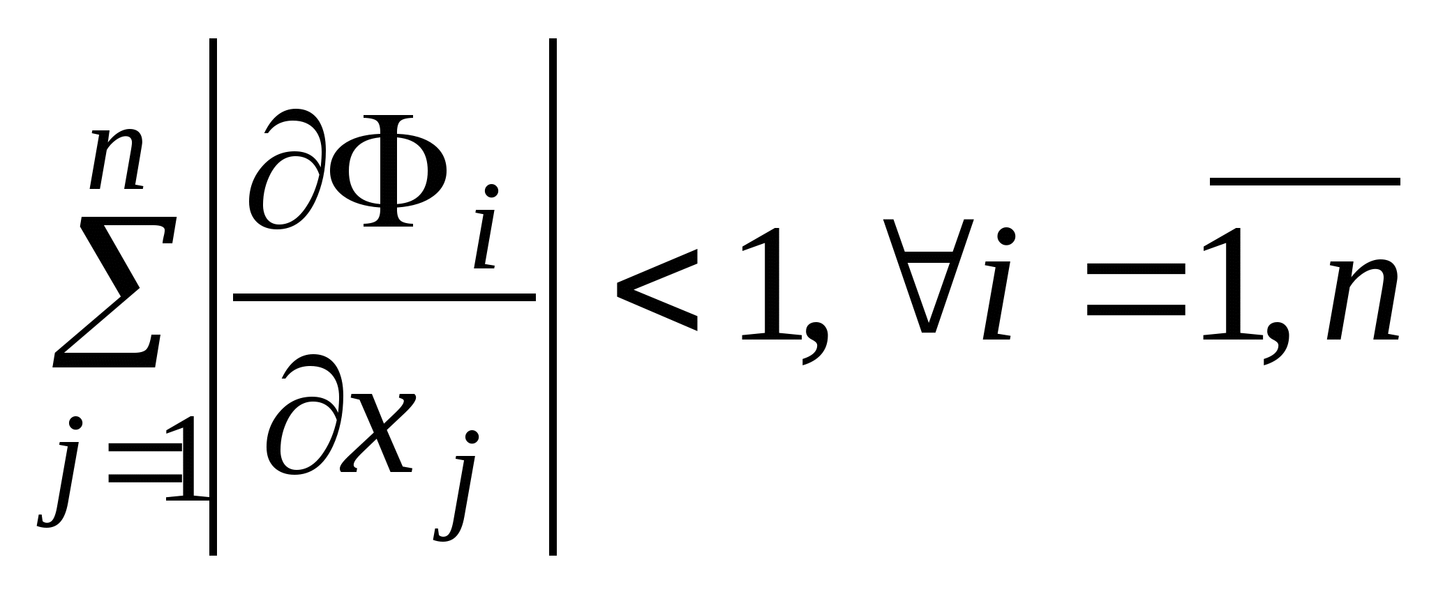 (то есть модули диагональных коэффициентов для каждого уравнения системы больше суммы модулей всех остальных коэффициентов, не считая свободных членов).