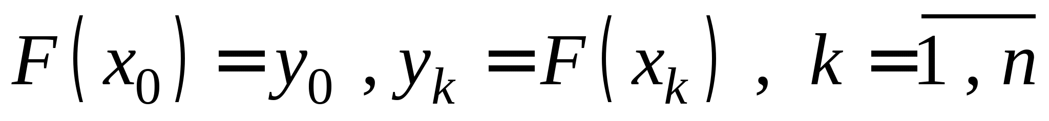 найти табличные разности первого и второго порядка. 1. 2. 3. 4. 5. 18. Какое из приведенных ниже понятий не используется в теории численного интегрирования? квадратурные и кубатурные формулы; квадратурная формула Ньютона-Котеса; коэффициенты Котеса; достаточные условия сходимости; формула Симпсона. 19. Как называется частный случай квадратурной формулы Ньютона-Котеса при формула Ньютона; формула Котеса; формула трапеций; формула Симпсона; формула Эйлера. 20. Как называется частный случай квадратурной формулы Ньютона-Котеса при формула Ньютона; формула Котеса; формула трапеций; формула Симпсона; формула Эйлера. 21. Как называется следующая квадратурная формула: формула Ньютона-Котеса; формула трапеций; формула Симпсона; формула Ньютона; формула Котеса. 22. Как называются коэффициенты вида: коэффициенты Лагранжа; коэффициенты Ньютона; коэффициенты Ньютона-Котеса; коэффициенты Котеса; коэффициенты Симпсона. 23. Как называется следующая квадратурная формула: формула Котеса; формула Ньютона-Котеса; формула Симпсона; формула трапеций; формула Ньютона. 24. Как называются величины табличные разности первого порядка; табличные разности второго порядка; табличные разности различных порядков; равноотстоящие узловые точки; неравноотстоящие узловые точки. 25. Как называется величина табличные разности первого порядка; табличные разности второго порядка; табличные разности различных порядков; равноотстоящие узловые точки; неравноотстоящие узловые точки. 26. Как называется величина табличные разности первого порядка; табличные разности второго порядка; табличные разности различных порядков; равноотстоящие узловые точки; неравноотстоящие узловые точки. 27. Какие понятия используются в задаче аппроксимации? отклонение построенной функции от экспериментальной; узловые точки; полином коэффициенты полинома; все ответы правильные. 28. Какие понятия используются в теории численного интегрирования? однократные и двукратные интегралы; квадратурные и кубатурные формулы; квадратурные формулы Ньютона-Котеса, трапеций, Симпсона; обобщенная кубатурная формула Симпсона; все ответы правильные. 29. Как называется следующая квадратурная формула: формула Ньютона; формула Котеса; формула Симпсона; формула Лагранжа; формула трапеций. 30. В чем состоит основная идея метода наименьших квадратов? по заданной таблице значений построить приближенно функцию таким образом, чтобы построенная функция проходила через узловые точки; по заданной таблице значений построить приближенно функцию таким образом, чтобы построенная функция не проходила через узловые точки; по заданной таблице значений построить приближенно функцию таким образом, чтобы построенная функция могла как проходить через узловые точки, так и не проходить через них; по данным эксперимента построить приближенно функцию таким образом, чтобы сумма квадратов отклонений построенной функции от экспериментальной в узловых точках была минимальна; по данным эксперимента построить приближенно функцию таким образом, чтобы сумма отклонений построенной функции от экспериментальной в узловых точках была минимальна. 31. В каком пункте алгоритма метода наименьших квадратов допущена ошибка? Задается таблица чисел Вводится функция Находятся необходимые условия экстремума функции Строится и решается СЛ