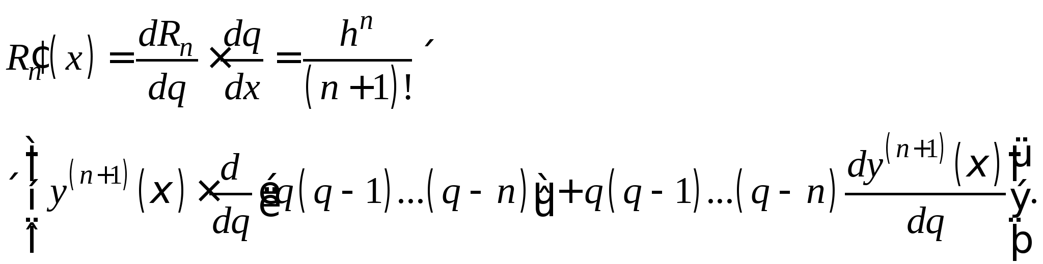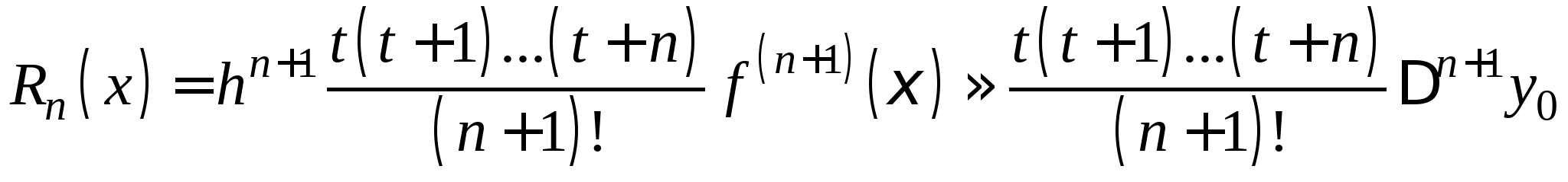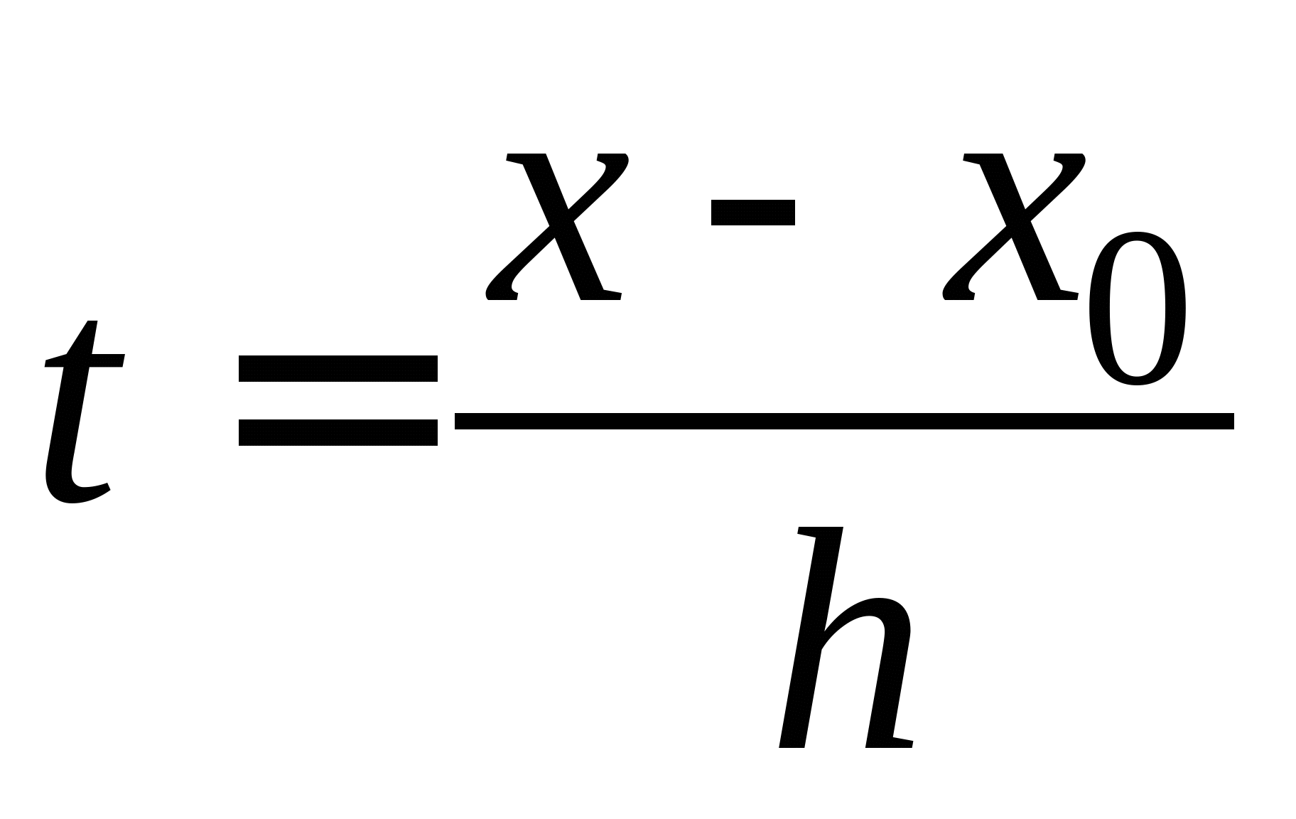 Для практического использования первую интерполяционную формулу Ньютона записывают в несколько преобразованном виде. Для этого введем новую переменную Тогда Подставляя (5.23) в (5.21), получим окончательный вид первой интерполяционной формулы Ньютона: Если в формуле (5.24) положить При Первую интерполяционную формулу Ньютона используют для интерполирования функции в окрестности начальной точки Остаточный член первой интерполяционной формулы Ньютона: где Учитывая, что