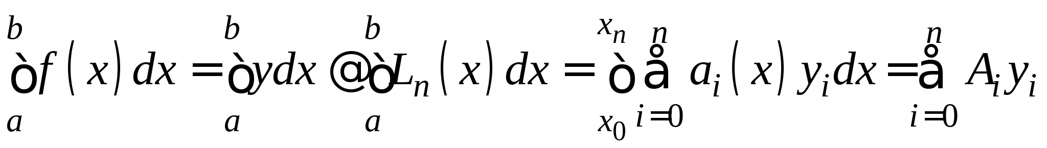 где Предположим, что Учитывая соотношение (6.12) и предполагая ГЛАВА 7. ПРИБЛИЖЕННОЕ ИНТЕГРИРОВАНИЕ ФУНКЦИЙ. §7.1. Квадратурная формула Ньютона-Котеса. Если функция Однако во многих случаях первообразная Определение 7.1. Численное вычисление однократного интеграла называется механической квадратурой, двойного интеграла механической кубатурой. Соответствующие формулы называются квадратурными и кубатурными формулами. Рассмотрим один из способов вычисления определенных интегралов. Если воспользоваться, например, интерполяционным полиномом Лагранжа, то, заменяя функцию где Требуется вычислить интеграл где Выведем явные выражения для коэффициентов Введем обозначения Заменяя в (7.3) функцию где Так как