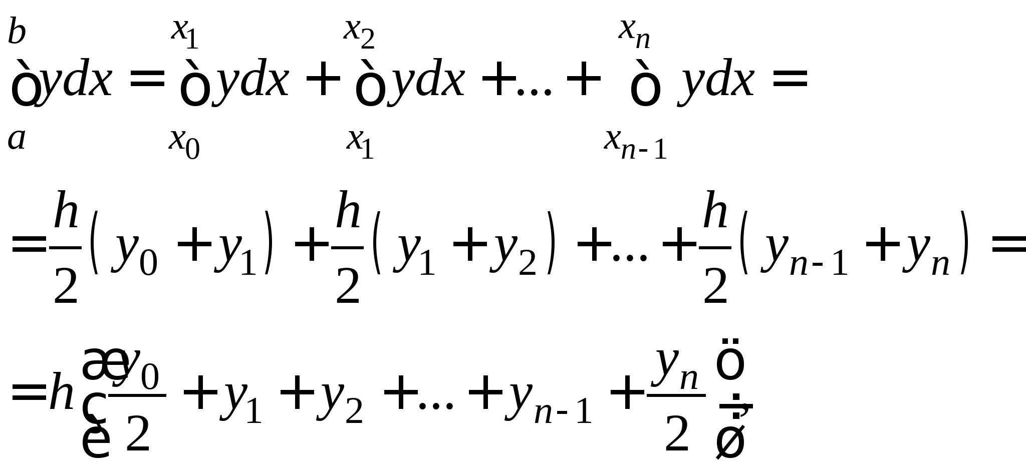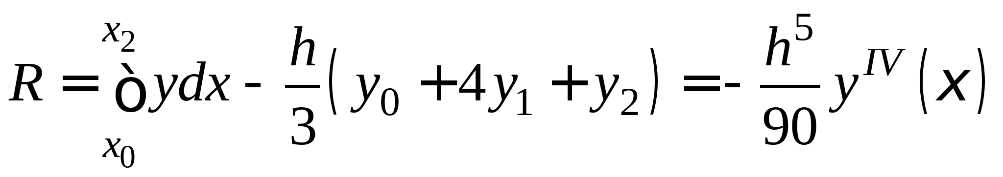 Так как называются коэффициентами Котеса, то можно записать следующую квадратурную формулу: Формула (7.6) называется квадратурной формулой Ньютона-Котеса. Нетрудно проверить, что для коэффициентов Котеса справедливы соотношения: 1) 2) §7.2. Частные случаи квадратурной формулы Ньютона-Котеса. 7.2.1. Формула трапеций. а) Пусть отрезок П Погрешность квадратурной формулы (7.7) равна: Если б) Рассмотрим общий случай, когда отрезок Разделим отрезок где Формула (7.9) называется общей формулой трапеций. Для нее справедлива оценка погрешности: где 7.2.2. Квадратурная формула Симпсона. а) По формуле (7.5) при Так как Ф Погрешность квадратурной формулы Симпсона равна: Квадратурная формула Симпсона является точной для полиномов второй и третьей степени. б) Общая формула Симпсона. Пусть Применяя квадратурную формулу Симпсона (7.11) к каждому сдвоенному промежутку