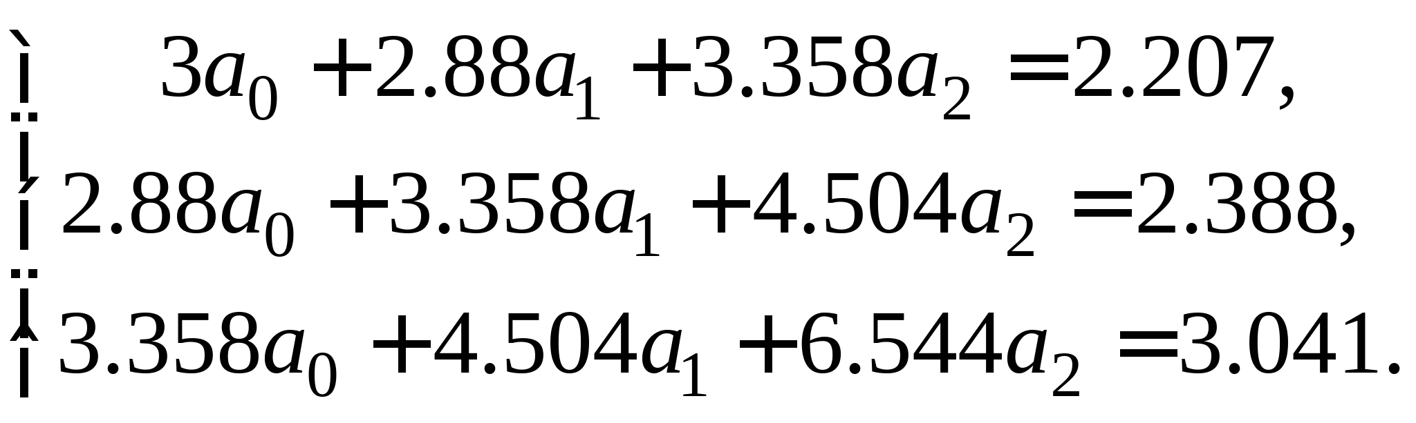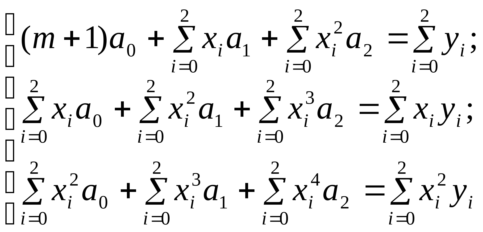 Значения искомых коэффициентов вычисляются по формулам: Искомый многочлен второго порядка будет иметь вид: