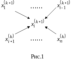 Начальное приближение обычно выбирают равным столбцу свободных членов преобразованной системы В этом случае значения Метод Зейделя. Более быструю скорость сходимости имеет метод Зейделя, в котором найденное