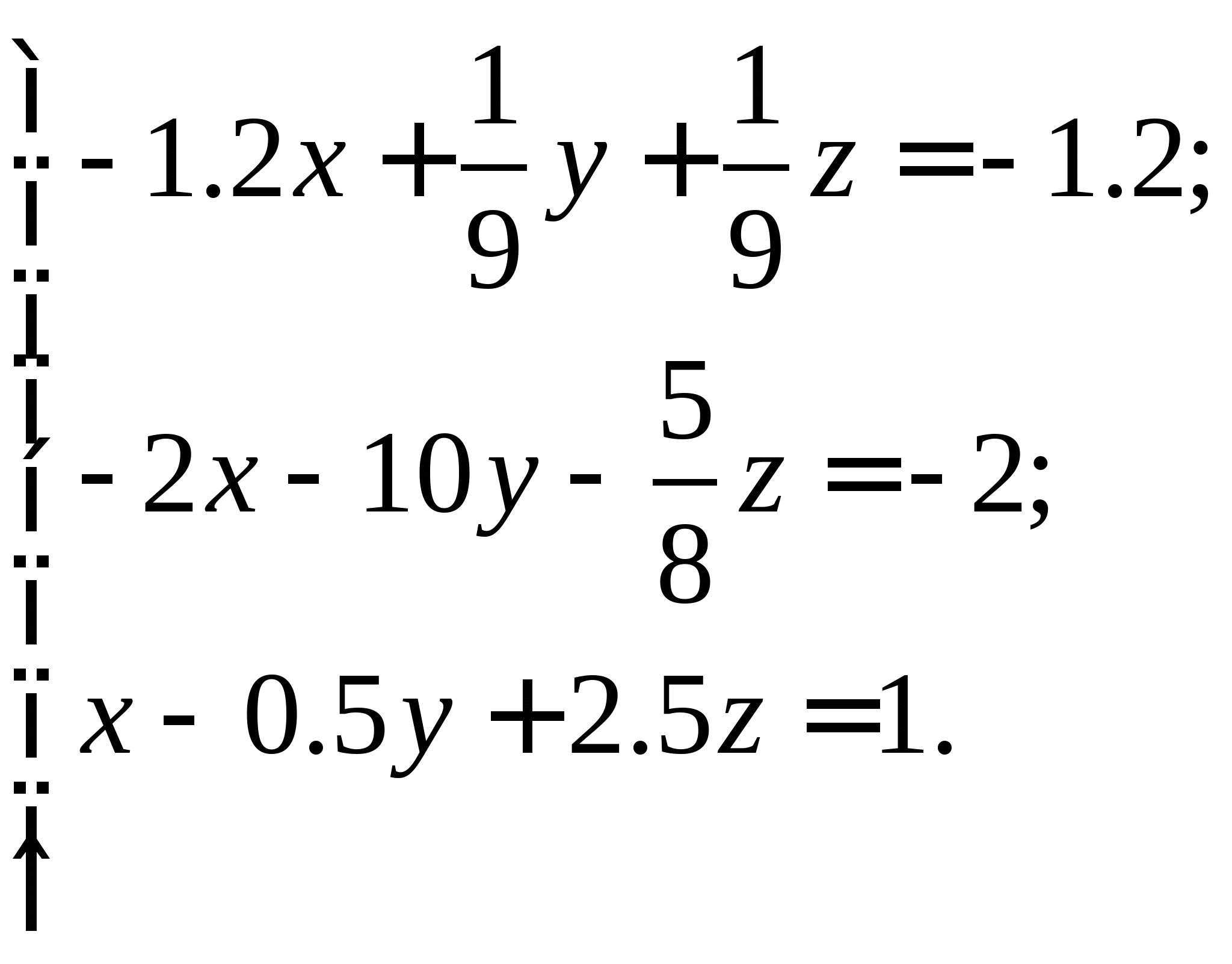 2. Построить рабочие формулы МПИ и метода Зейделя для численного решения системы (1). 3. Составить программу(ы) на любом языке программирования, реализующую(ие) построенные итерационные процессы. Решение. 1. Аналитическим решением системы являются значения: