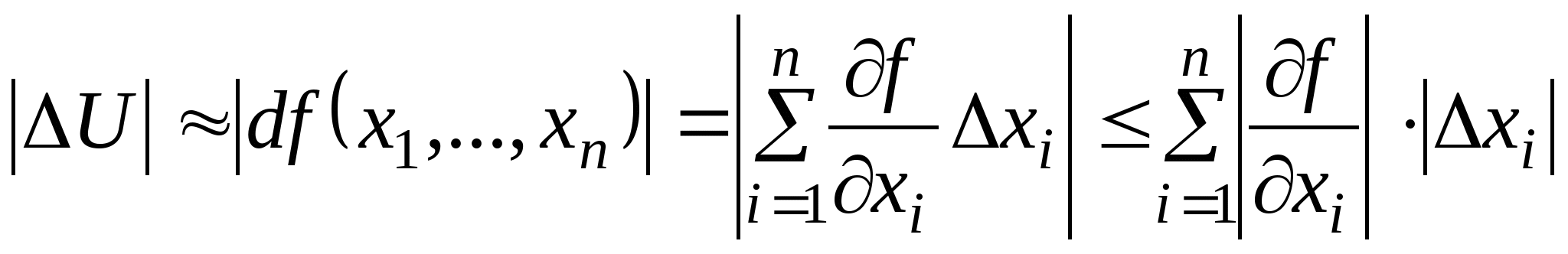 Погрешность частного Теорема 1.5. Относительная погрешность частного не превышает суммы относительных погрешностей делимого и делителя, т.е. Доказательство. Пусть Следовательно, Следствие. Если §1.6. Погрешность степени и корня Погрешность степени Теорема 1.6. Предельная относительная погрешность Доказательство. Пусть Погрешность корня Теорема 1.7. Предельная относительная погрешность корня Доказательство. Пусть §1.7. Погрешность функции Рассмотрим частный случай функции одной переменной. Пусть функция Таким образом, абсолютная погрешность функции пропорциональна абсолютной погрешности аргумента с коэффициентом пропорциональности Пример 1.6. Пусть задана функция Пусть требуется определить относительную погрешность Обобщим сделанные выкладки на случай функции многих переменных. Пусть Если Следовательно, Тогда где Окончательно получим §1.8. Обратная задача теории погрешностей Встречаются задачи, когда нужно определить абсолютные погрешности аргумента функции, чтобы абсолютная погрешность самой функции Предполагается, что частные дифференциалы Так как