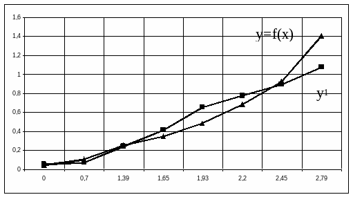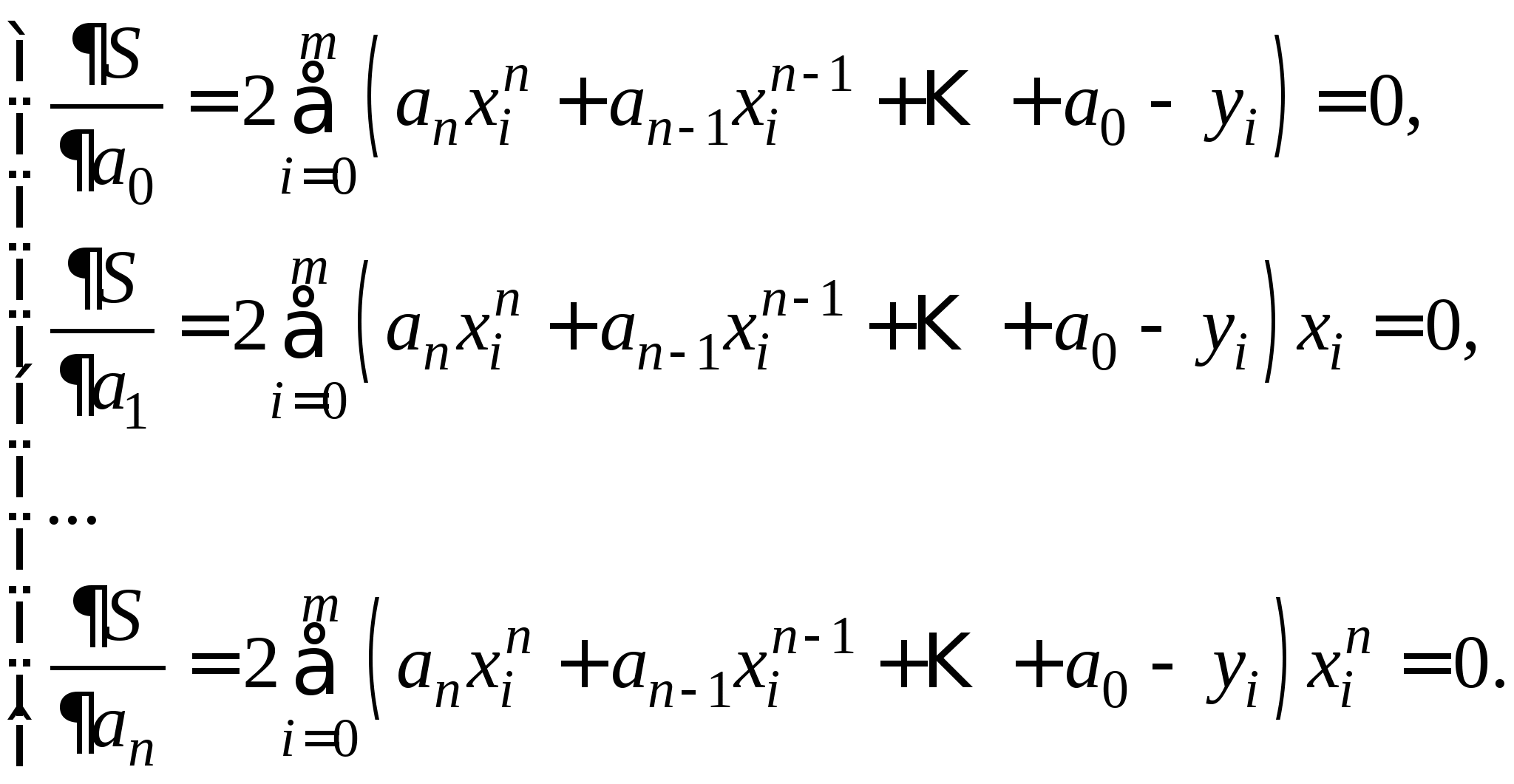 где коэффициенты Тогда искомый многочлен Лагранжа второго порядка будет иметь вид: где I интерполяционная формула Ньютона второго порядка по заданной системе точек строится в виде: Здесь величины II интерполяционная формула Ньютона второго порядка по заданной системе точек строится в виде: Здесь величины При построении аппроксимационного многочлена методом наименьших квадратов необходимо, чтобы сумма квадратов отклонений построенной функции от экспериментальной в узловых точках была минимальна. Будем строить функцию в виде многочлена второго порядка Согласно алгоритму метода наименьших квадратов, для построения многочлена второй степени необходимо вычислить следующие суммы: