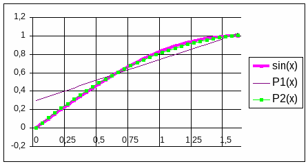 можно построить интерполяционный полином Лагранжа второго порядка вида: