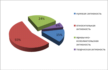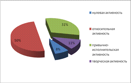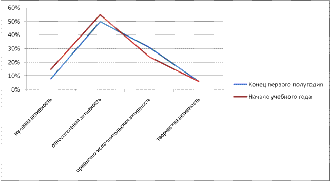Цель: выявление уровней познавательной активности учащихся 10 Г класса на конец первого полугодия по методике Е. В. Коротаевой.