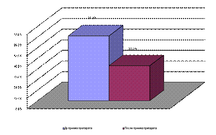 Рис. 4.1.1. Динамика изменения количества аутофлоры у пациентов с изначально неблагополучной общей резистентностью организма В группе пациентов с относительно нормальным пейзажем (25 человек) в ходе оздоровления также отмечено количественное уменьшение аутофлоры: до приема продукта среднее количество высеваемых колоний 2,1±1,5, после шести месяцев приема – 1,3±0,8. При этом наблюдалось явное улучшение ее качественного состава: процент маннитположительных колоний снизился с 61% до 33% (рис.4.1.2.).
