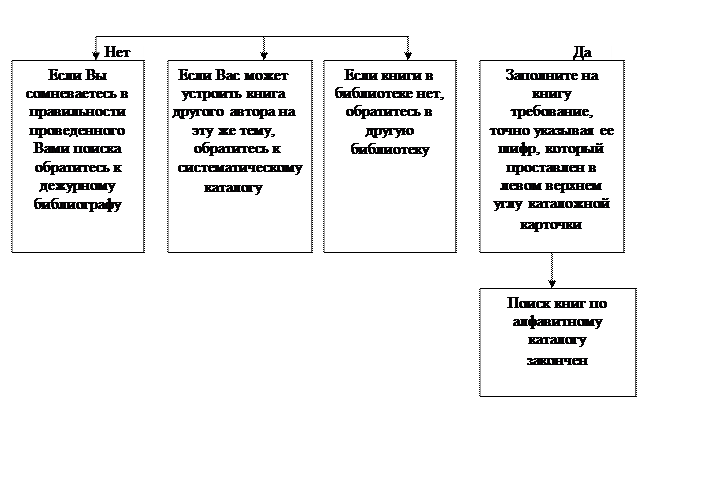 Библиотека НГАУ ведет алфавитный, систематический каталог и картотеку статей. В алфавитном каталоге все карточки на книжный фонд расставлены в порядке фамилий авторов либо названий книг. Если авторов не более трех, книгу нужно разыскивать по первому автору (на соавторов даются сокращенные дополнительные карточки). Если же авторов более трех, книгу нужно разыскивать по алфавиту на название. В систематическом каталоге карточки на книжный фонд расположены по отраслям знания в соответствии с определенной системой библиотечно-библиографической классификации. В систематической картотеке статей содержаться сведения о статьях из периодических и продолжающихся изданий, в том числе и тех журналов и сборников статей, которые отсутствуют в фонде библиотеке, но по тематике соответствуют профилю университета (особенно касается картотеки научных трудов преподавателей). Принцип организации картотеки тот же, что и систематического каталога. Рекомендуем изучить алгоритмы поиска литературы по каталогам и систематической картотеке статей. Это обеспечит Вам качественный подбор литературы и экономию времени. АЛГОРИТМ ПОИСКА ЛИТЕРАТУРЫ ПО АЛФАВИТНОМУ КАТАЛОГУ